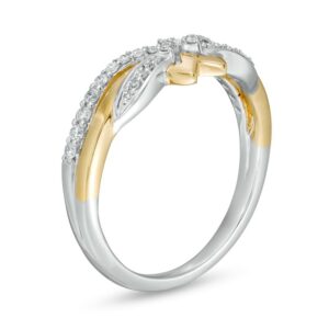 This dynamic choice is crafted in sterling silver and 10K gold with a diamond-studded silver accent and a polished gold ribbon. With 1/5 carat diamonds and a brilliant polished sheen, this design is mesmerizing and will complement most outfits. Sterling silver rings cannot be resized after purchase.