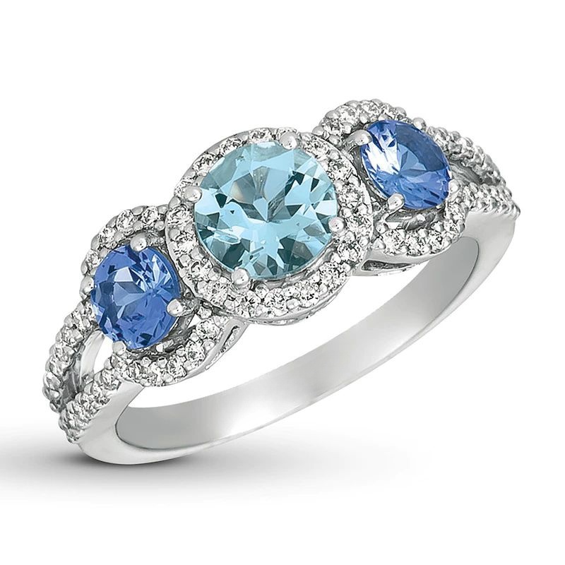 Garnet, Blue Sapphire and 1/15 CT. T.W. Diamond Symbol Ring in Sterling Silver