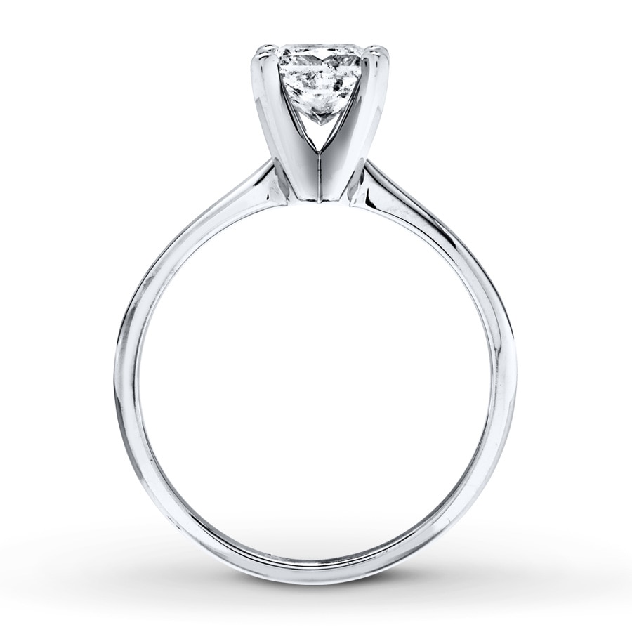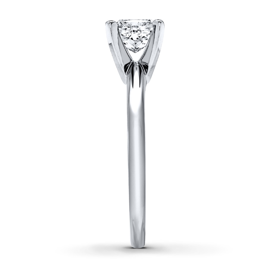 A dazzling 1 carat princess-cut diamond sparkles at the center of this impressive solitaire engagement ring for her. The band is styled in 14K white gold.