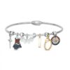 Multi-Gemstone Charm Bangle Bracelet in Sterling Silver and 10K Gold:Multi-Gemstone Charm Bangle Bracelet in Sterling Silver and 10K Gold